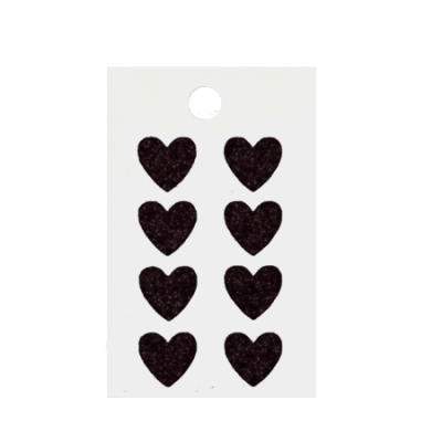Pegable Mini Heart Glitter Stickers – Black – 8 pcs. per sheet