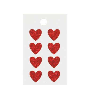Pegable Mini Heart Glitter Stickers – Red – 8 pcs. per sheet